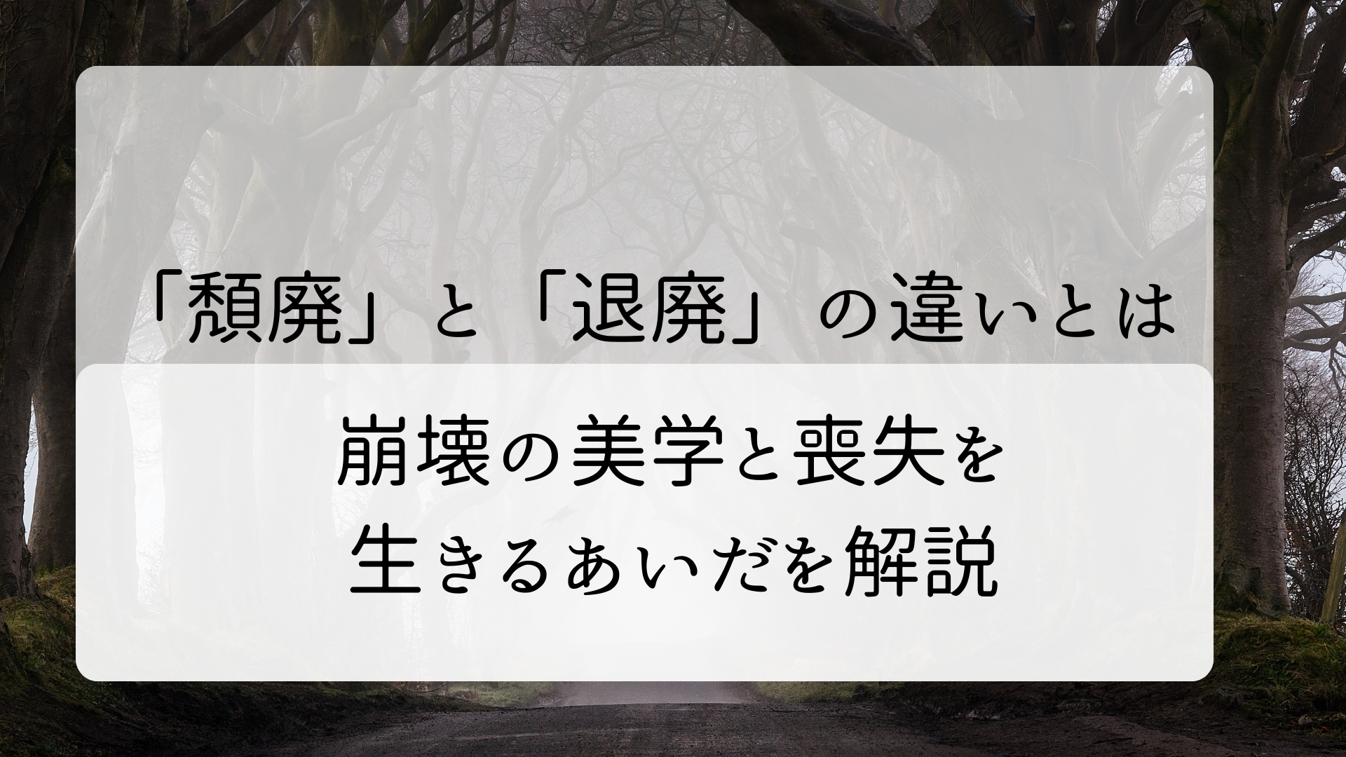「退廃」が「あるべき姿から外れること」を指すのに対し「頽廃」は「形あるものが壊れていく刹那の美しさ」を指します。私たちが古い廃墟を見て、単に「古い」と思うのではなく、そこに言いようのない郷愁や美しさを感じる時、それは「退廃」ではなく「頽廃」と呼ぶのがふさわしいのです。